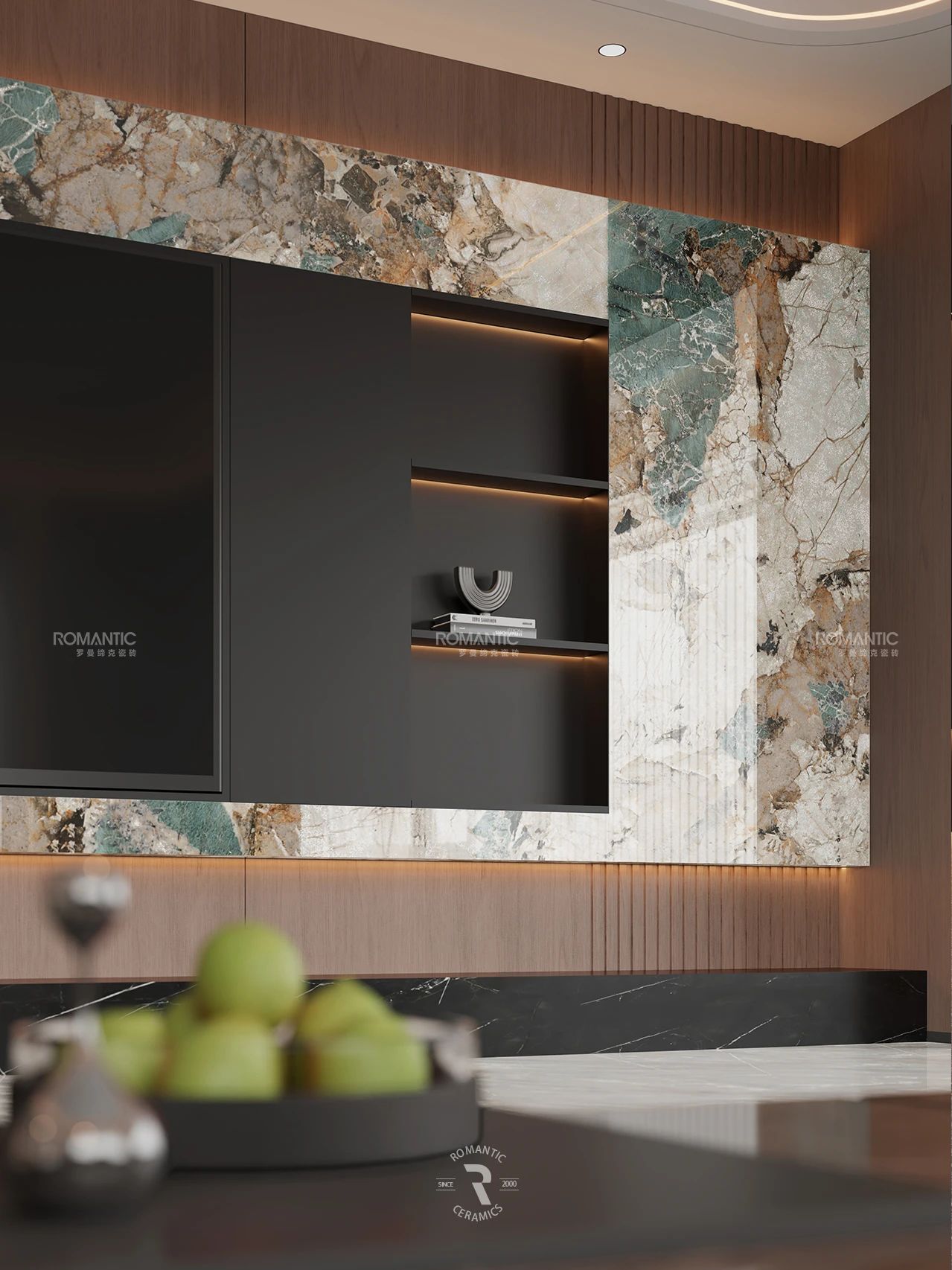 鏡湖春曉獨特的紋理與色彩組合,能夠瞬間成為空間的視覺焦點,適用于現(xiàn)代輕奢客廳丨高端酒店/會所,衛(wèi)